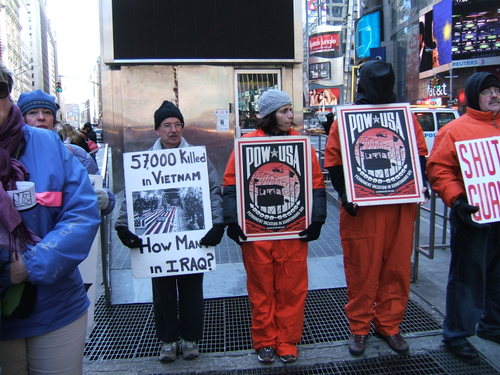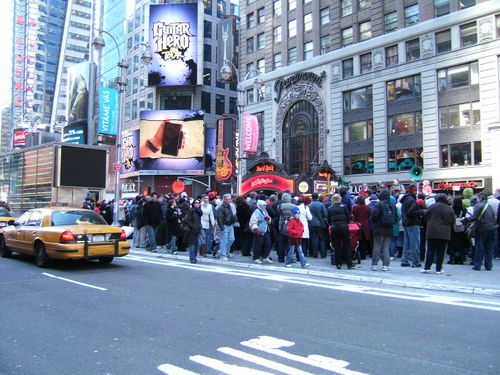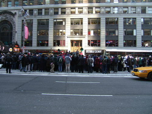 Here we are at Times Square. The military recruiting station (closed; i suppose because of the bomb about two weeks ago) is the low building on the left of the island.