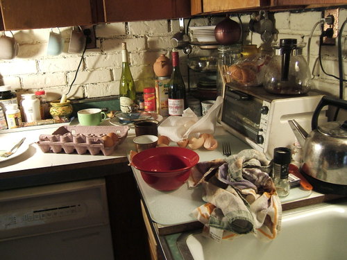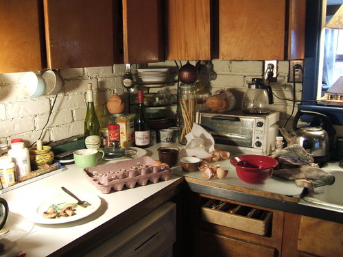 Here’s what the kitchen looked like after this extravaganza (with Brigid left to do the clean-up!) –