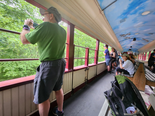 The open air car which was the one we chose. As the commentator said “In the open air car you will notice the air conditioning only works when the train is in motion.”