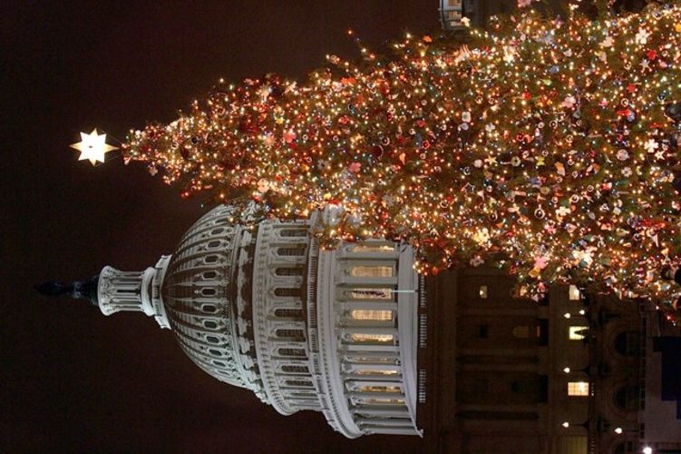 Washington D.C. The Capitol Christmas tree is decorated with 3,000 ornaments made by schoolchildren