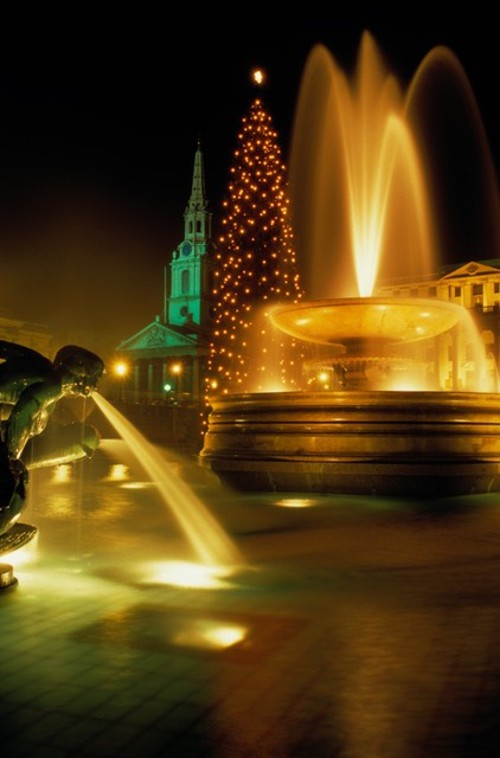 Trafalgar Square. The tree is a gift from Norway – they’ve been sending a Christmas tree as a gift since 1947 as a token of thanks for Britain’s aid in World War II