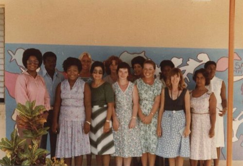 We lived on Grand Cayman for two years. Brigid taught first grade in the Georgetown primary school, and here she is in a group picture with the other teachers.