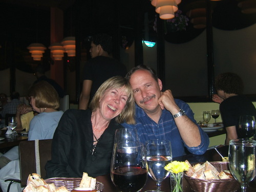 Brigid with Doreen Novotny in May, 2006. Imbibing before heading out to eat