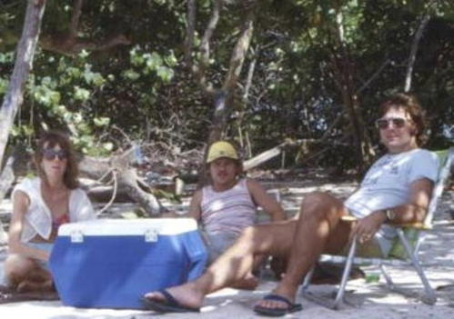 We left Jamaica in July of 1979 and stayed in New york for about two months, before going back to the Caribbean – the Cayman Islands. we had a number of visitors to my parent house where we were staying that summer, including John and Celia Pye, and Emma and Bryn. Our close family friends the Rimms lent us a trailor and the Pyes stayed in it in the driveway for several days. Note that Philip – in front of Brigid – loves to get in our pictures.