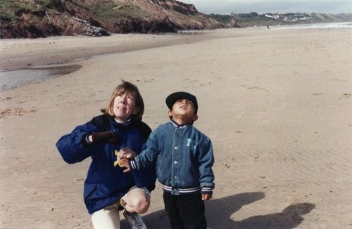 On the North Sea coast of England – Joe and Brigid flying a kite. We think it’s the summer of 1996.
