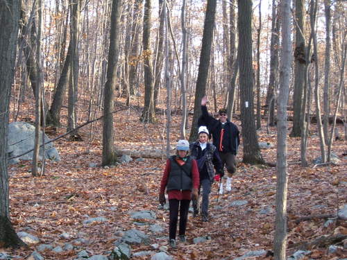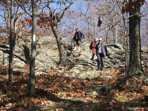 The day’s plan entailed stashing our van on a road the Trail crossed, and going back to the Elk’s Pen parking area where our prior hike had ended a month ago. We then headed west on the Appalachian Trail, which first crosses a bridge over the NY Thruway, then Rte. 17, before disappearing into the woods and immediately ascending a hill (Arden Mountain) with a 550 foot rise in elevation. This hill is affectionally known as “Agony Grind”, according to the AT guidebook.