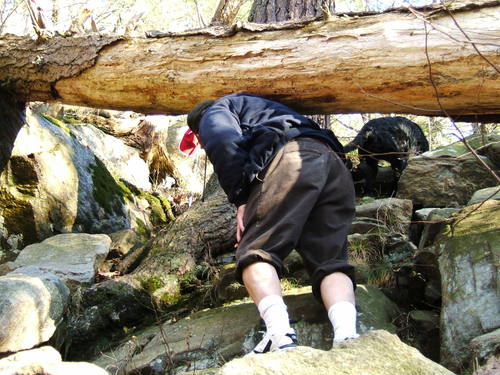 A boy and his dog. If you are wondering about the orange string – it is the hunting season!
