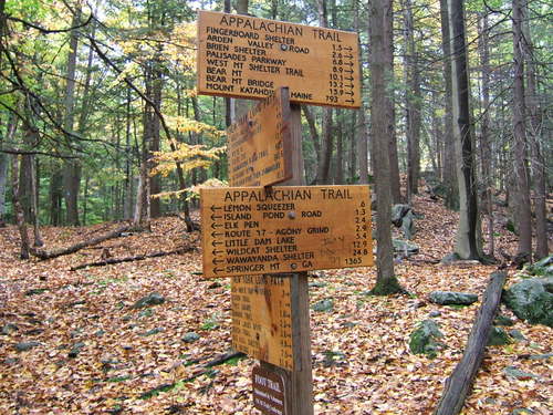 Every so often on the Trail, you come across these oddball kind of street signs on the AT. Pretty amusing. That’s Tom and Brigid, again photo by Karen.