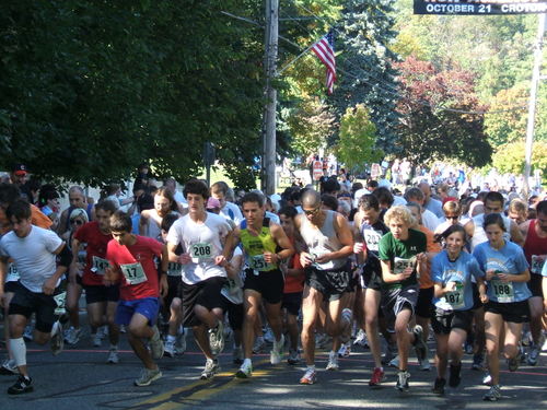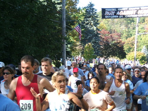 The overall winner of the race was fast, very fast. I was about 300 yards from the finish line, at Five Corners (Croton people will know the terrain), where the runners make a turn and head for the line. I could see this lone runner coming down from the library, and he was motoring. Zoomed past me, even though no other runners were in sight. The second place guy came by about three minutes later, also with no competition around him.