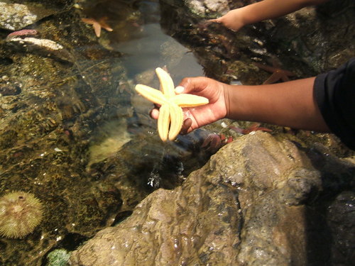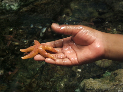 There was a “petting area” in the Aquarium. And a big sign up that said “It’s a good idea to not take the animals out of the water.” So naturally Tim…
