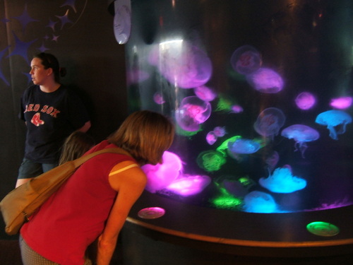 There was also a special exhibit on about “Jellies” or jellyfish (Note that I did not crop out the Red Sox fan below!). Evidently Global Warming is going to kill all the fish and then “Jellies” will take over the World! YIKES!!