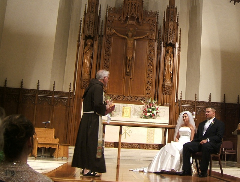 The presider is Fr. Jack Rathschmidt, a Capuchin Franciscan now stationed in Boston, who served for many years in our parish as a Sunday associate, and who is a wonderful homilist. Brigid and I had a nice chat with him at the reception.