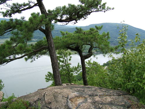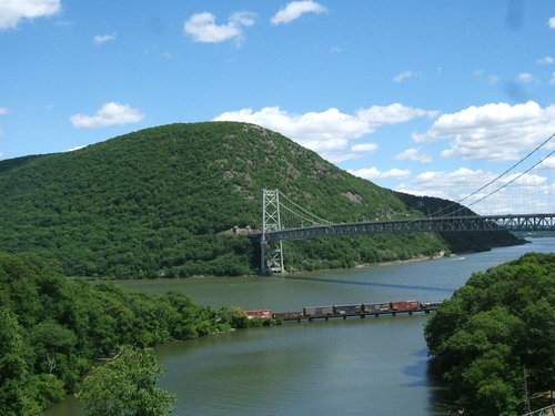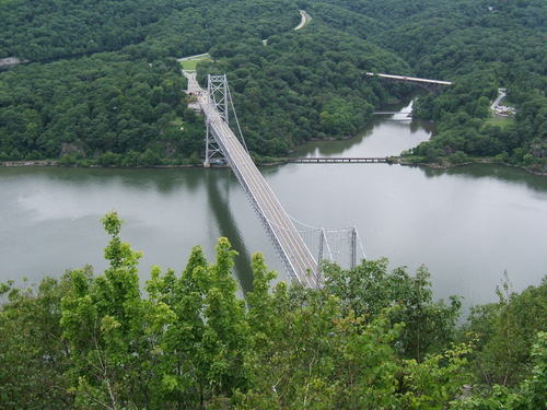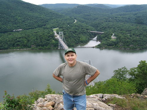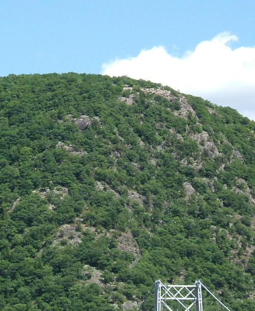 After several postponed attempts, I finally got up Anthony’s Nose (Eck!). This is the 900 foot rise above the east end of the Bear Mountain Bridge. Here’s what it looks like from the west side of the Hudson, a few hunded yards north of the bridge. It doesn’t look like it’s 900 feet above the Hudson, and when we were up there, it didn’t feel that high, but that’s the height given in Paths Along the Hudson.