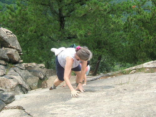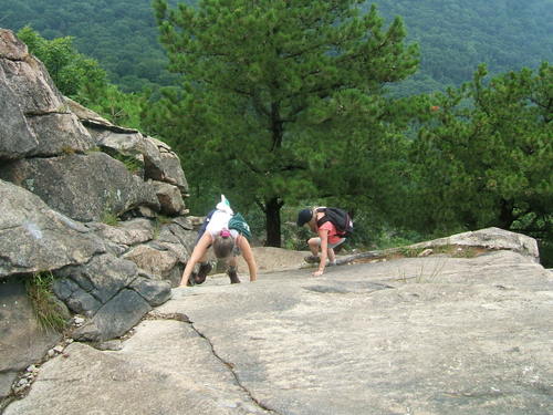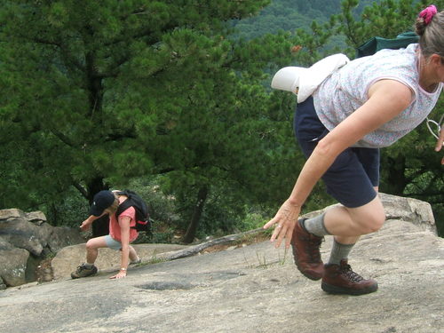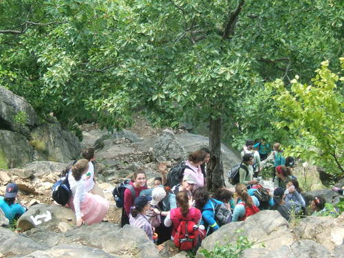 As we came down we met this group of hikers from a Jewish all-girls camp. Most of them were pretty cheery (but a few weren’t!). There were close to forty girls with only two or three counselors, and their goal was the first lookout point about 500-600 feet up. But that was another 20 minutes climb and I don’t think they got much higher then here.