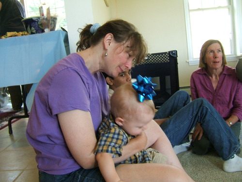 Our second day in St. Albans another Vermont friend Laurie Hurley took us to a birthday party for one of her nephews, who turned one. Laurie is the oldest of ten children, so they have BIG family gatherings. This is Laurie with her nephew, Aedan.