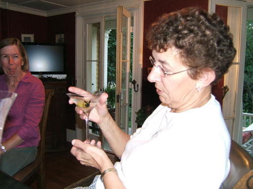 Here’s Pauline in a lighter mood, as she inspects the wine –