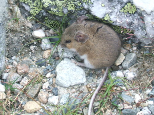 Despite the terrain and weather, there are creatures at the top – Tim got this picture of a deer mouse a few yards from the summit