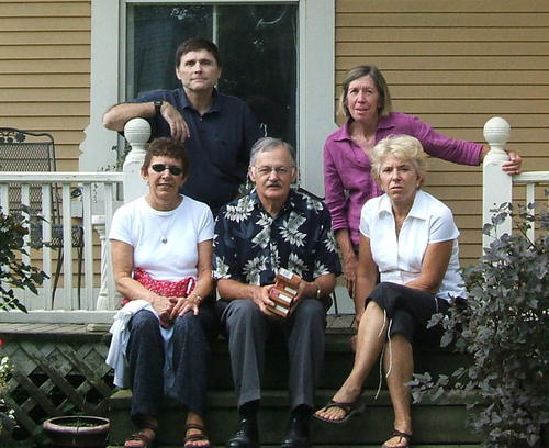 Here’s the five of us on the porch. Pauline is in front of Brigid, and seems to have her “game face” on.