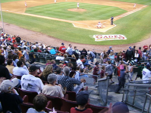 Having survived rafting on the Lehigh River last weekend Tom Faranda’s Folly: Photos from the weekend, including rafting and a friend’s retirement party , Tim and I yesterday evening went to the Hudson Valley Renegades minor league baseball game (Just the two of us, Brigid and Joe passed on this one). We went along with most of Tim’s cub scout group, and hundreds of other cub and boy scouts, and some girl scouts.