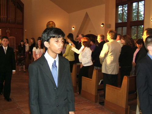 Here’s Joe processing out of Church after Mass. I guess they were told to look serious!