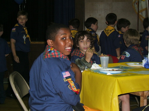 The Cub Scout Blue and Gold dinner was last night, with Tim and his nine buddies “crossing the bridge” from Webelos one to Webelos two.