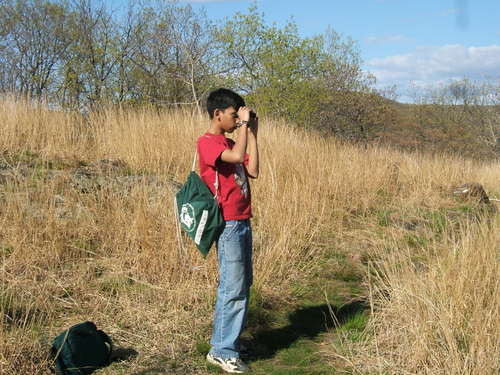 Here’s Joe doing a little scrambling on the north side of the summit (not the way we got to the top), as he was trying to get some pictures of hawks flying by.