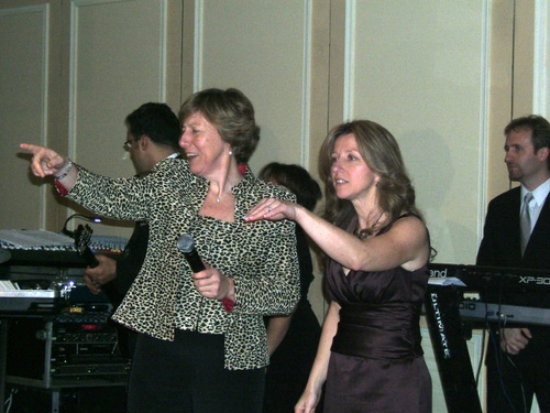 The Lents are big on pointing – the second picture is of two of Tish’s four sisters, Michelle with the microphone (she is also in the NYPD) and Judy. Michelle had some nice things to say about her sister and new brother-in-law, and then Judy sang them a song – quite beautifully.