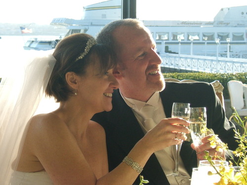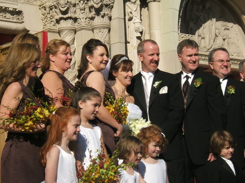 We got to the Church late (right before the consecration) and it was filled with all sorts of Irish-looking people. And the priest had an amusing comment at the end as he said “I perform a lot of weddings here, and it’s not very often that we have a church full of people who go to communion and know the responses.” The Wedding was at St. Benedict’s and the reception at the Marina Del Rey.