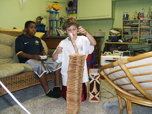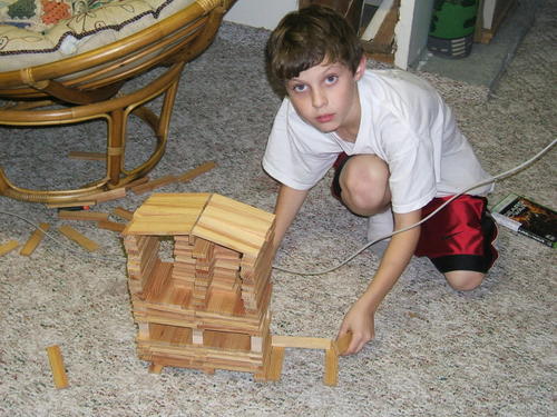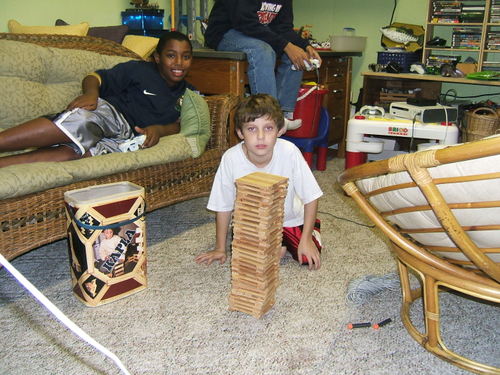 Thursday Justin (one of Tim’s buddies) went on a building spree in our basement. Actually Justin did most of the building while Tim and Joe spectated.