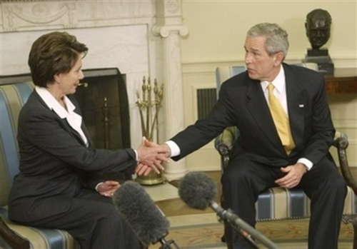 It looks to me like the President is a little concerned that Ms. Pelosi might kick him in the nuts crotch.