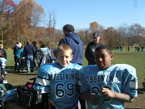 Tim had his last game of the season Saturday, playing for the 3rd and 4th grade Ossining Little League football team, and they finally got a win. They beat Hastings, 12-7. The Ossining program is very good, with two 3rd and 4th grade teams (most river towns only have one side) so the talent is spread a little thin. Hence the losing record.
