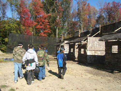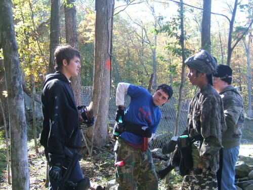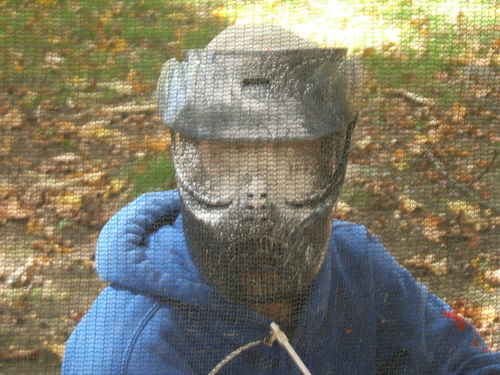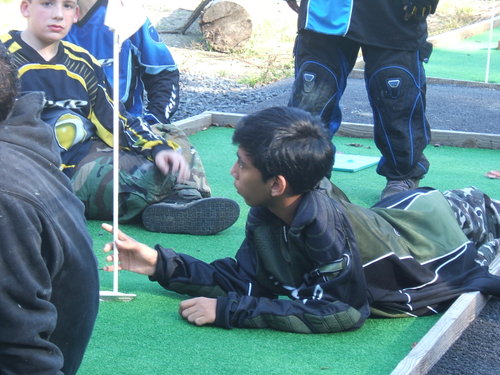 This is Shane McNulty – who took a few shots to the face. That’s why helmets and masks are required. The paintballs are travelling at about 280 ft. per second (FPS) and can do some real damage if you are hit in the eye… The picture was taken through the safety netting which is up to protect spectators.