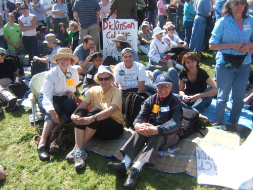 I believe the bulk of the participants were from Reformed Jewish synagogues – the most “liberal” wing of the Jewish spectrum. They had clearly taken the lead in organizing the Rally – I travelled with a group of 12 from my Church (Holy Name of Mary) on a bus with 44 total travellers, organized by the Reform Synagogue in Croton. We got to the Rally (It was at the Capital building end of the Mall) way early and so were able to spread our blankets out less than 100 yards from the podium.