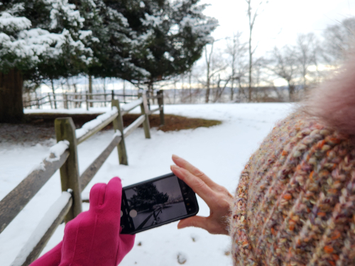 So yesterday we went for a walk on Croton Point later in the morning as the snow was ending. Pictures below – check out the red tailed hawk. And for dinner we had some gorgeous Mac and Cheese that Tim made. We also had a really interesting rum based cocktail that we discovered – more about that in another posting. And the house was empty – both away for a few days with friends. Very unusual for just the two of us to be “home alone.”