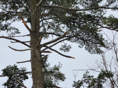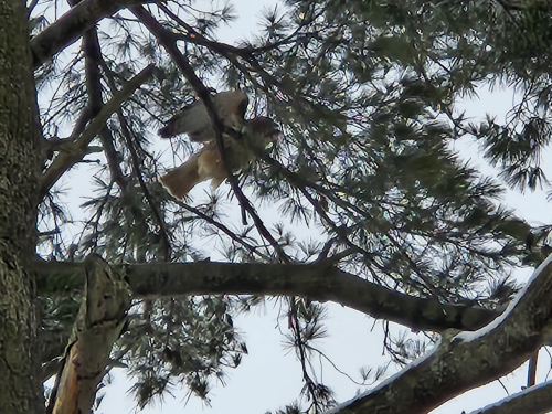 And as it flew off, I was able to get this shot – the wings outstretched – through the nearby tree branches. Won’t win any awards but I thought it was cool.