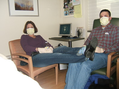 But in very short order, the tech came back looking for a urine specimen, a big dude showed up with a chest x-ray machine and took a picture, a resident came around and felt me up, the nurse took six blood cultures, and then cultured my medi-port and all three openings on my IV catheter.