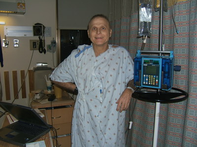 Here’s a picture, taken by Caroline, the night nurse, around 9PM. I like this picture, because it makes me appear to have more hair than I’ve really got.