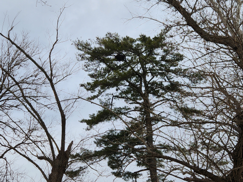 With no leaves on the other trees, this is a better view of the nest than at other times of the year.