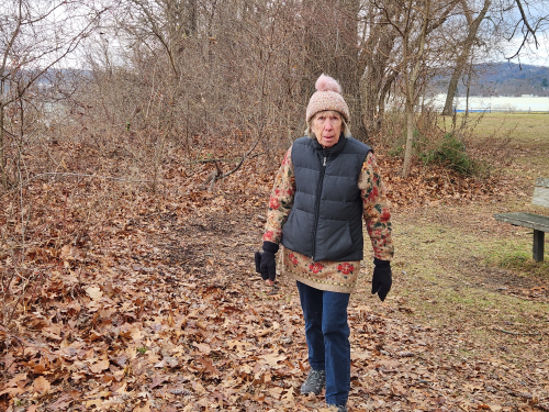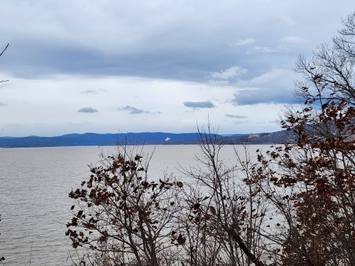 So this was a late morning roundabout, just over two mile walk. Brigid is looking to build back up to five miles. Croton people will recognize where we were. The first three pictures are all taken from the elevated area, west of where the model airplanes are flown. The first and third ones looking north up the Hudson. The elvevation is at least 90-100 feet above the river – the photos are a little deceptive.