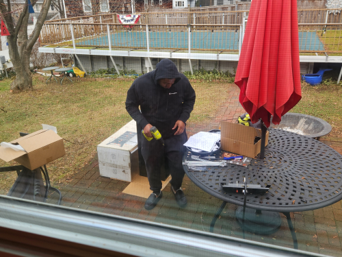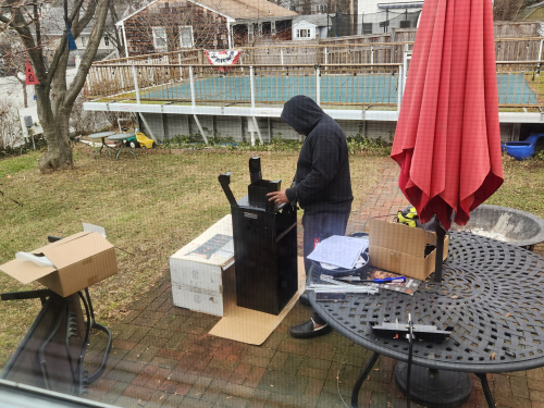 Then Tim worked on assembling his Christmas present smoker cooker.