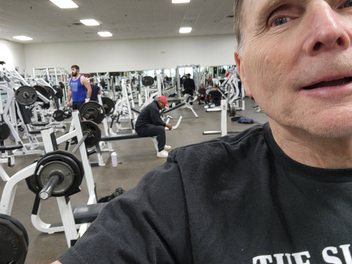 I’m pretty sure the last time I was in the gym with Tim was pre-pandemic. But Wednesday evening we were both there and lucky to get the only two benches in the gym.
