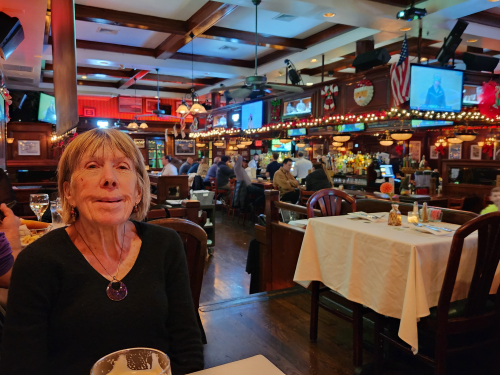 With her doofus look while we are having dinner at Rory Dolan’s in Yonkers a few weeks ago.