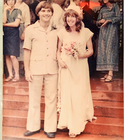 Requires an explanation – our wedding June 23, 2979 shortly before we left our teaching jobs in Jamaica. My classic bowl haircut courtesy of Brigid… thankfully I didn’t cut her hair.