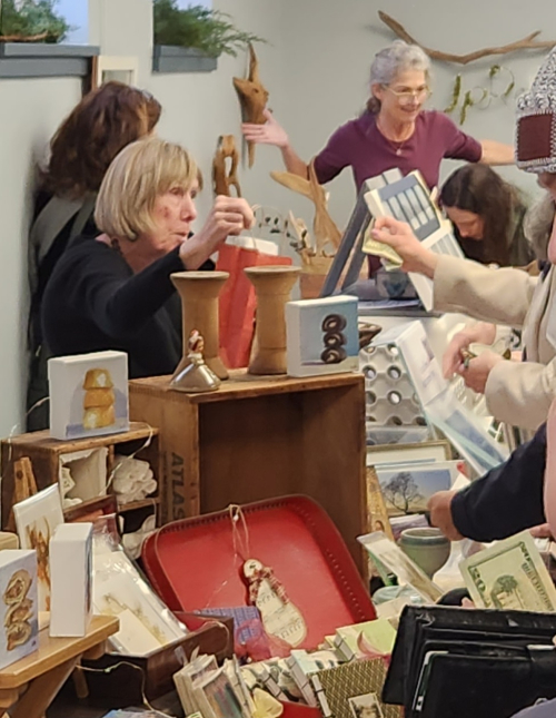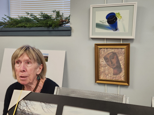 This is at the Croton Craft Fair in the village office building – two weekends ago. Note picture of BVM behind her.
