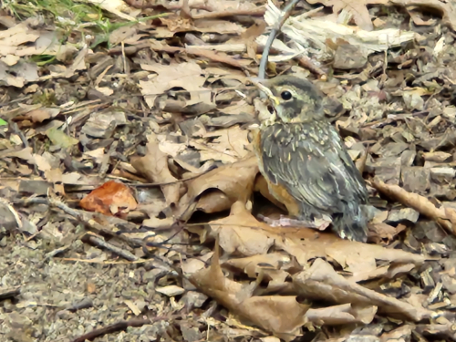 Here you go. Cute. But I don’t think this guy, who was having real trouble flying, had much chance of surviving. But Brigid thinks the Mom would show up to save her baby. Hope so.