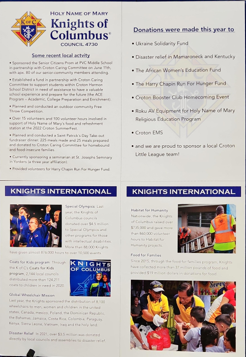 I am proud to be a life member of the Knights of Columbus. And our Council is extremely active.The fundraiser was yesterday’s communion breakfast and this poster was up.
