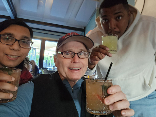 Here are poor old the three of us, left behind and moping at Yuka’s with our Margaritas.