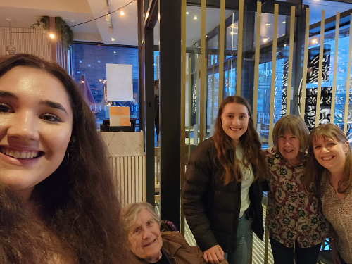 And here they all are – Libby is sitting down, and that is Rachel (her husband and son didn’t make the trip) on the far right.
