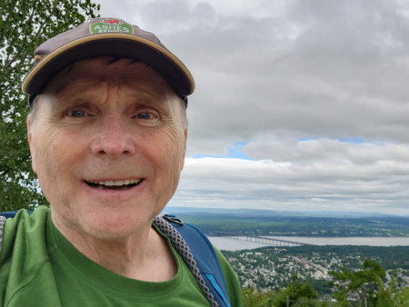 Here I am at the North Mt. Beacon peak – elevation about 1100 feet. That’s the Newburgh Beacon Bridge in the background. It took me almost exactly 50 minutes to get up.