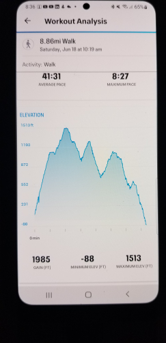 Here is data from the “MapMyWalk” app on the phone. I’ve used this software for several years and it’s very accurate.